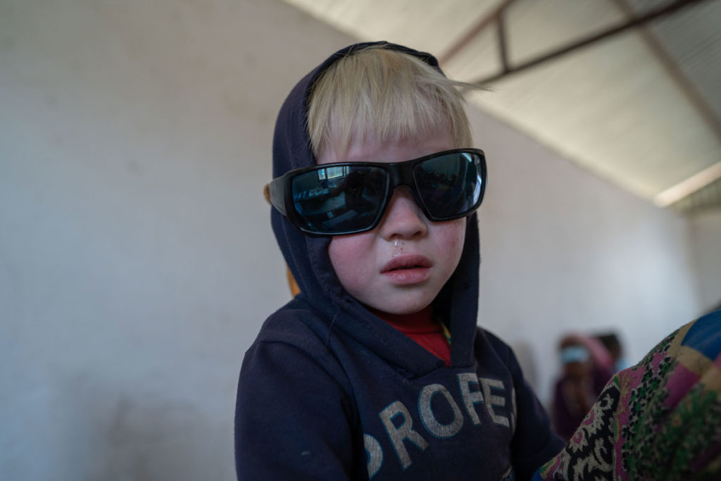 The eye doctors saw more interesting cases than the dentists. Within the community there is a family group where 5 children are all albino and on this occasion we saw three, aged between 5 and 18 and all suffering from Oculicutaneous Albinism, whereby the not only their skin and hair is is lacking melanin but their irises too. Unfortunately there is no cure for albinism and the best that can be done it to ensure their skin and eyes are protected from the sun while correcting eye and vision problems as best as possible. Dark glasses will be sent back to the village with our porter team later this month for each of the children affected.
