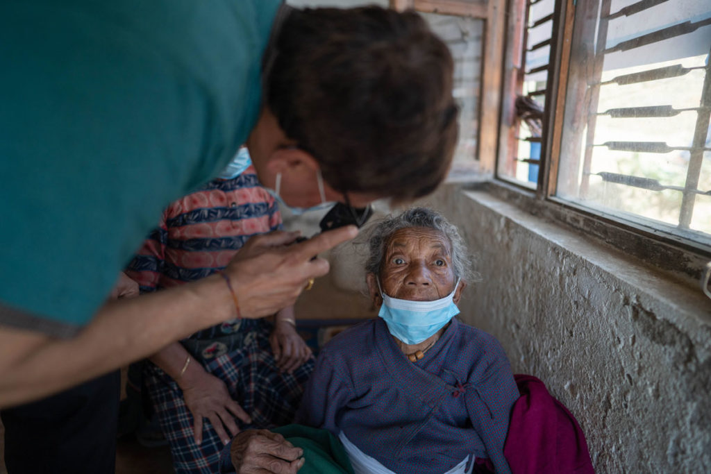 It wasn’t just children suffering from cataracts within this community and in total the doctors discovered 19 suitable for surgery. One was an 83 yr old, Kamisha Sherpa who had arrived after a 2 hour walk, on a stretcher carried by her son and daughter-in-law. With cataracts in both eyes, both suitable for surgery, it was hoped that she would travel with the rest of the cataract patients the following day to the nearby town of Trishuli, where Tilganga Eye Hospital was running a free cataract surgery camp. Unfortunately, given her age and her inability to walk her family decided not to risk the trip and took her home instead.